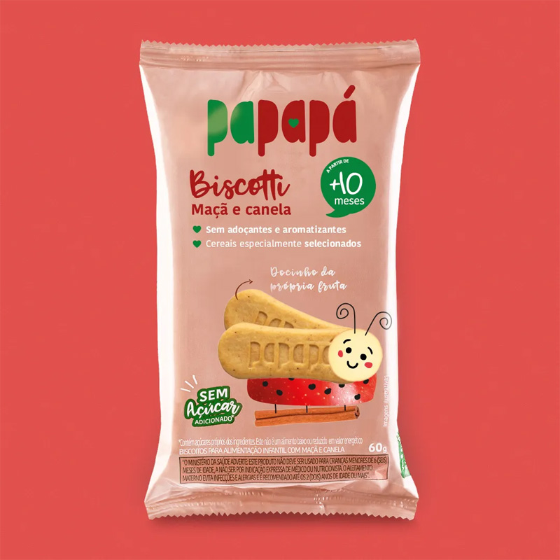 | Adocicado pela própria fruta, com uma textura macia e formato anatômico para as mãozinhas dos bebês, o Biscotti é uma opção saudável de lanche para oferecer sem culpa aos pequenos, a partir de 10 meses. A linha é feita com cereais selecionados, fibras naturais além disso é: