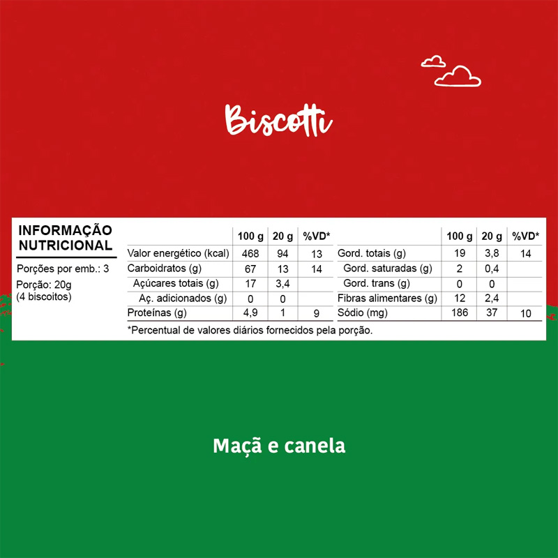 | O Biscotti de Maçã e Canela contém 12 unidades. |