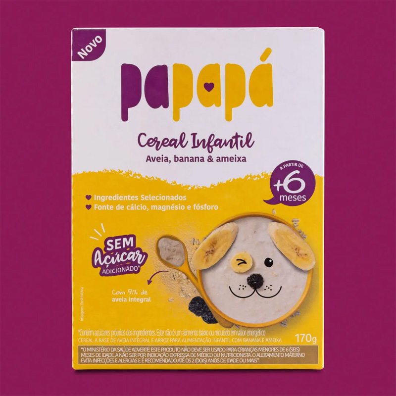 O Cereal Infantil de Aveia, Banana e Ameixa da Papapá é de preparo instantâneo, com zero açúcar adicionado.