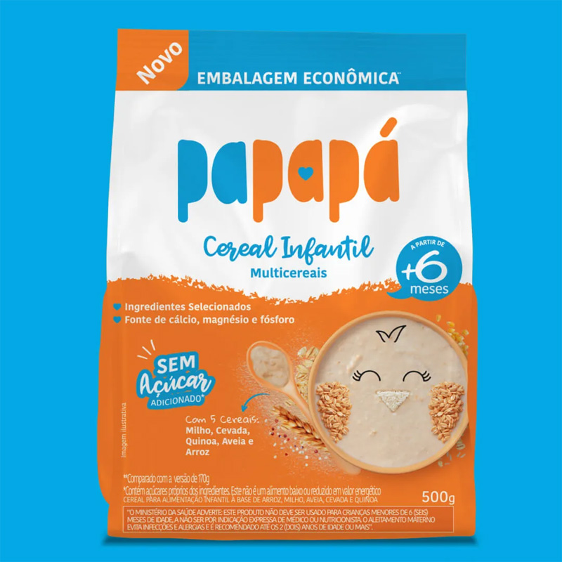 | O novo Multicereais da Papapá, é um cereal infantil de preparo instantâneo. Sua composição conta com 5 cereais (milho, cevada, quinoa, aveia e arroz) e é fonte de cálcio, magnésio e fósforo.